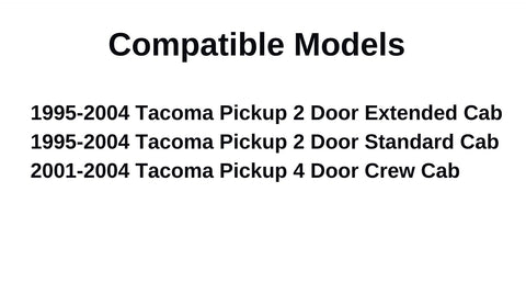 - Compatible Models : 1995-2004 Tacoma 2 Door Standard , 1995-2004 Tacoma 2 Door Extended , 2001-2004 Tacoma 4 Door Crew Cab