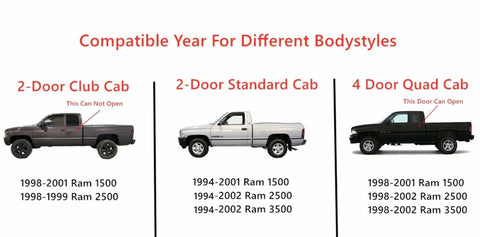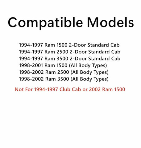 - Compatible Models: 1994-1997 Ram1500 Pickup 2 Door Standard Cab , 1998-2001 Ram1500 Pickup (All Body Styles), 1994-2002 Ram2500 Pickup (All Body Styles), 1994-2002 Ram3500 Pickup (All Body Styles)