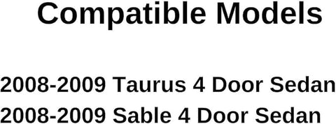 - Compatible Models: 2008-2009 Taurus 4 Door Sedan , 2008-2009 Sable 4 Door Sedan