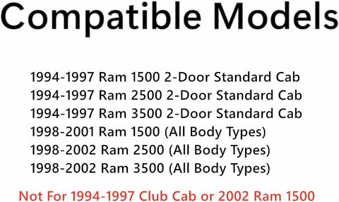 - Compatible Models : 1994-1997 1500 2 Door Standard Cab only , 1994-1997 2500 2 Door Standard Cab only , 1994-1997 3500 2 Door Standard Cab only , 1998-2001 1500 Pickup, 1998-2002 2500 Pickup, 1998-2002 3500 Pickup